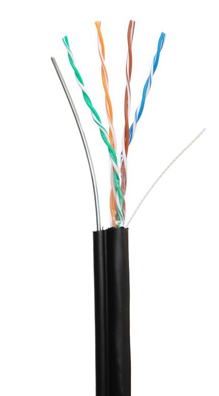 Кабель Технокабель U/UTP 4 пары, Кат.5e, внешний с тросом, PE - 40C, 24AWG (0.51), черный, 305м